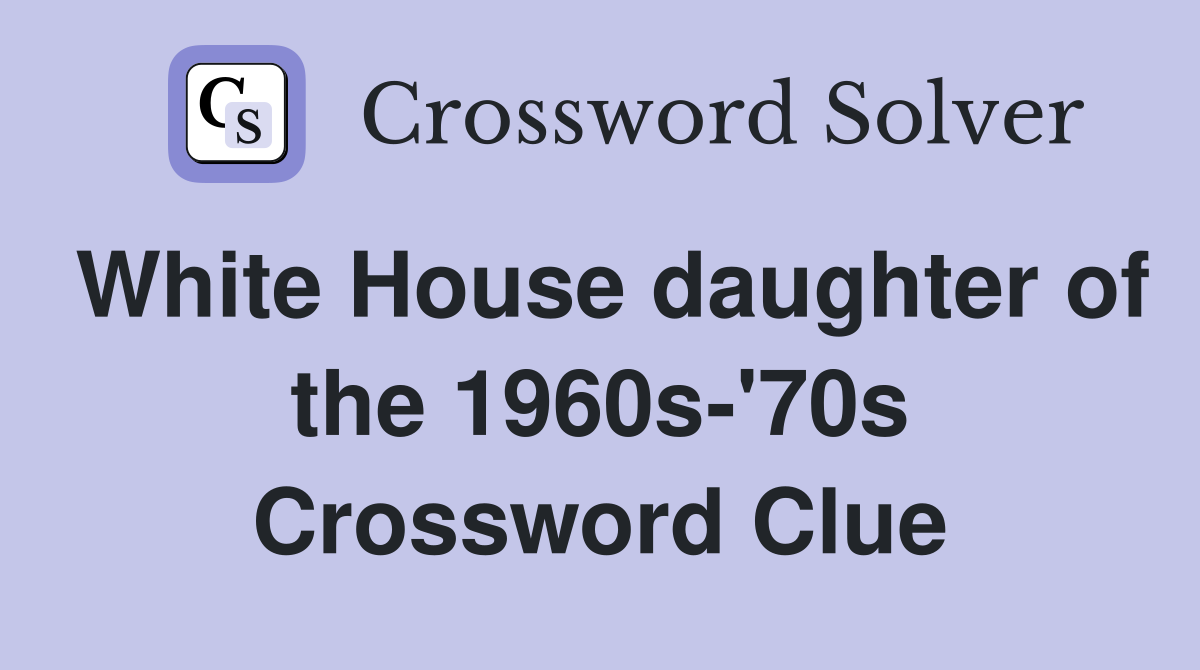 White House daughter of the 1960s 70s Crossword Clue Answers