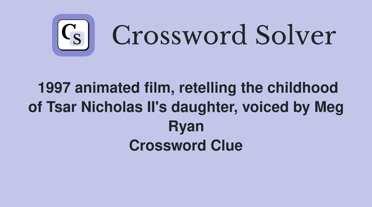 The youngest daughter of Tsar Nicholas II subject of a 1997 animated