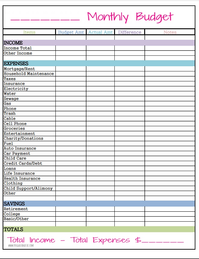 Free Printable Family Monthly Budget Worksheet