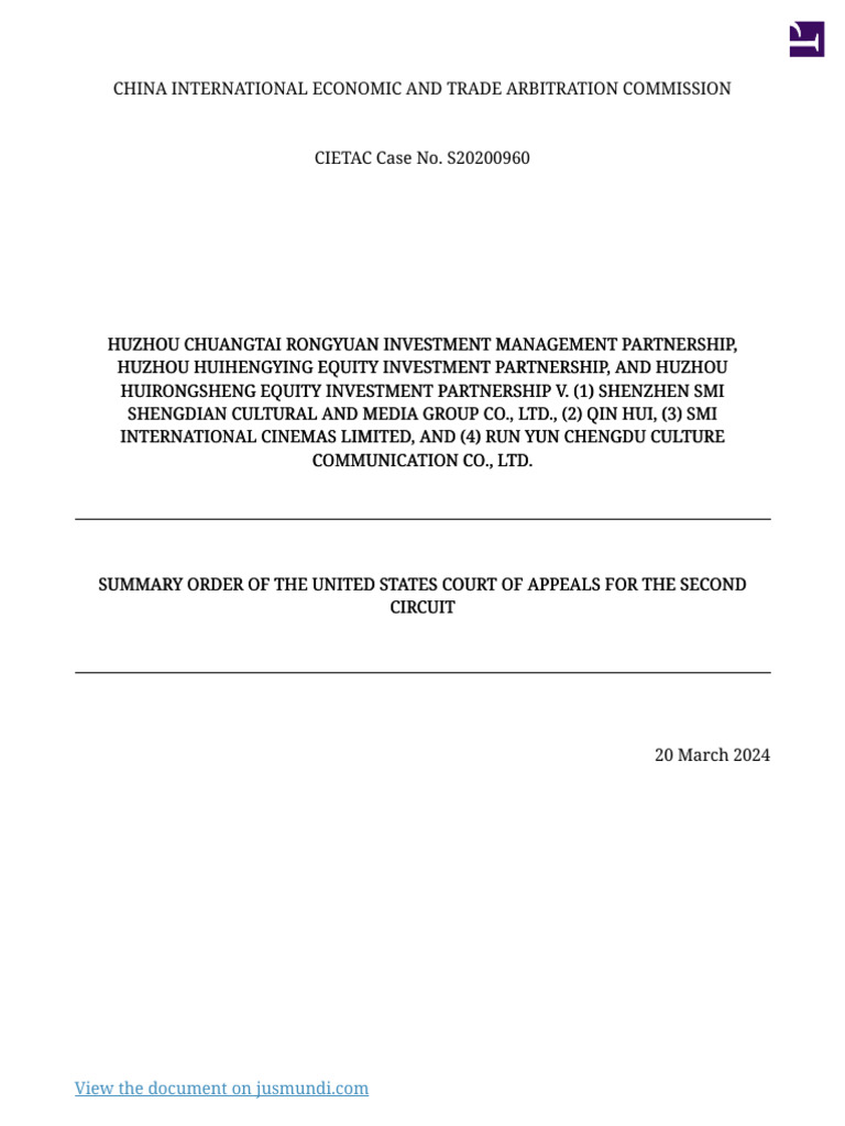 JusMundi PDF Huzhou V Run Yun Chengdu Culture Communication and Others