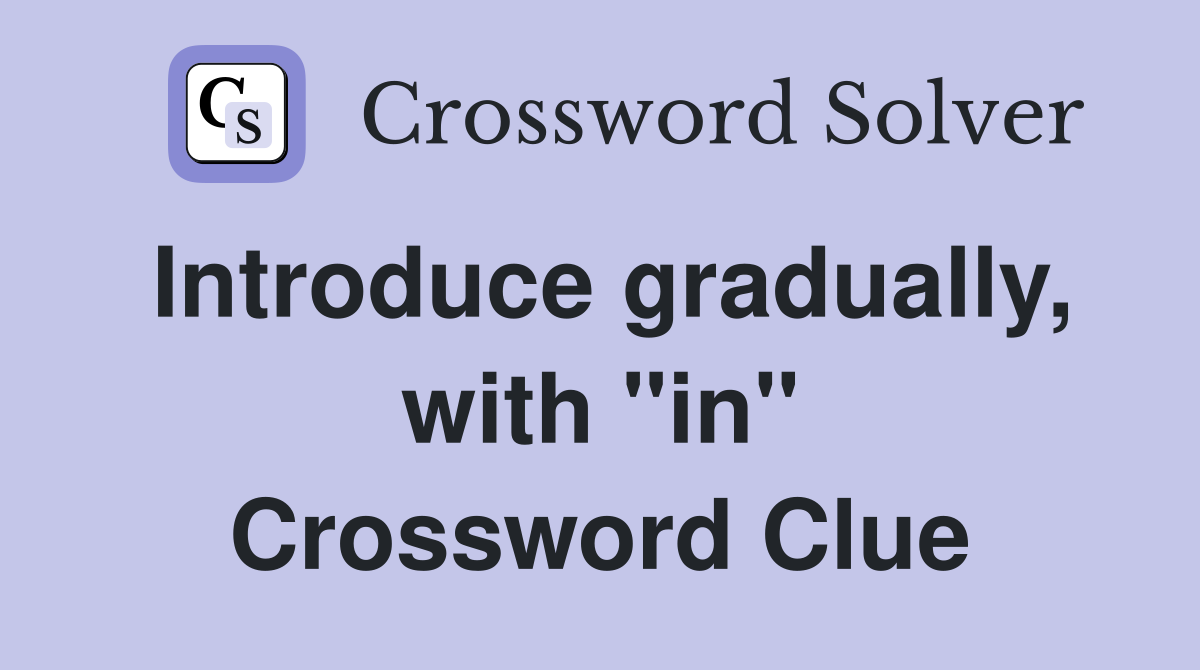 Introduce gradually with quot in quot Crossword Clue Answers Crossword Solver