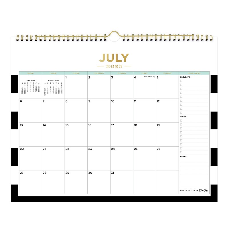 2024 Day Designer Monthly Wall Calendar 8 34 x 11 Rugby Stripe Black