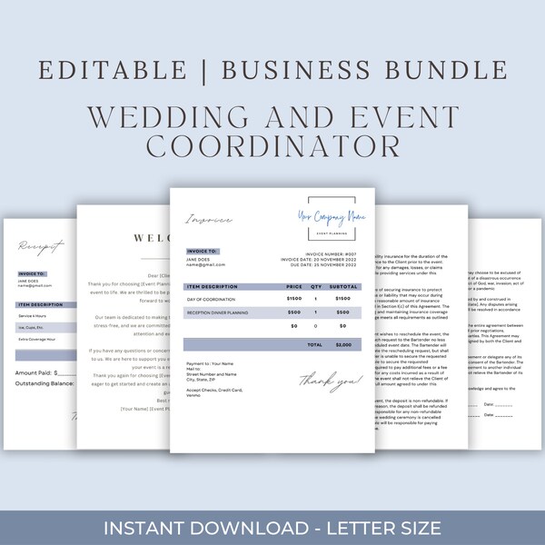 Wedding Coordinator Contract Template Invoice Welcome Letter Etsy