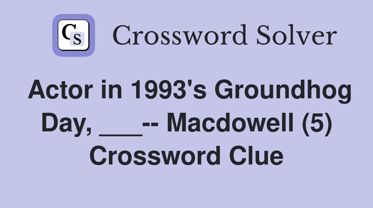 Actor in 1993 #39 s Groundhog Day Macdowell (5) Crossword Clue