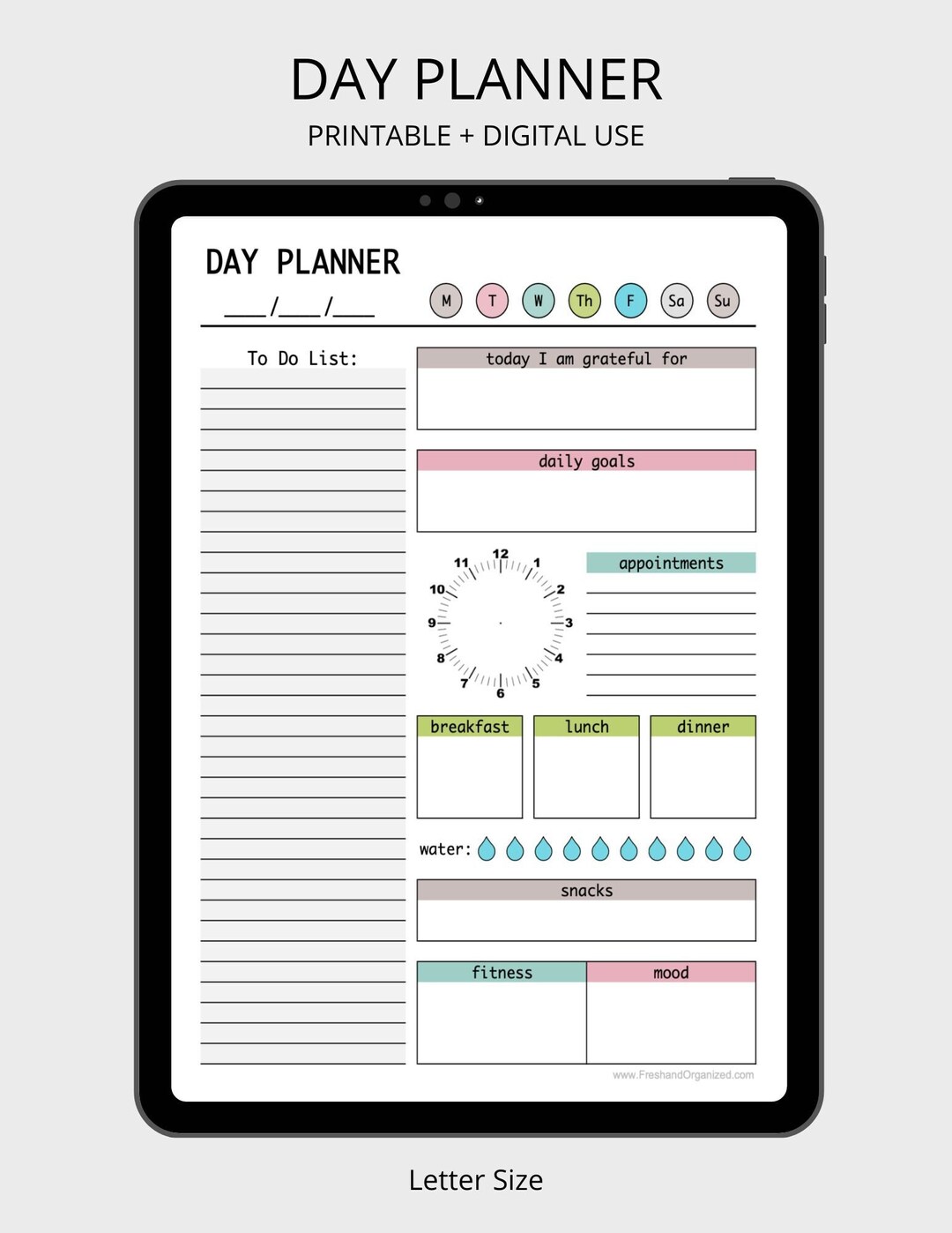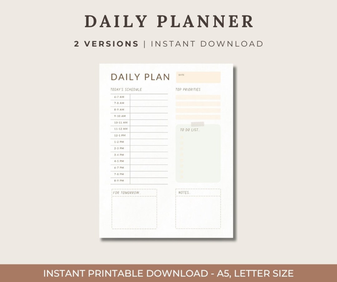Day Planner Printable Daily Planner Print at Home Letter Etsy