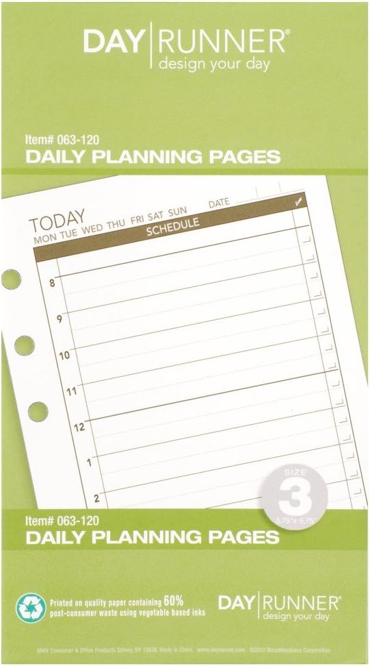 Amazon com : Day Runner Daily Planning Pages Size 3 Hourly