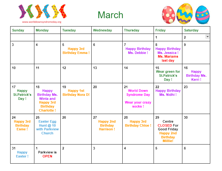Daycare Calendar