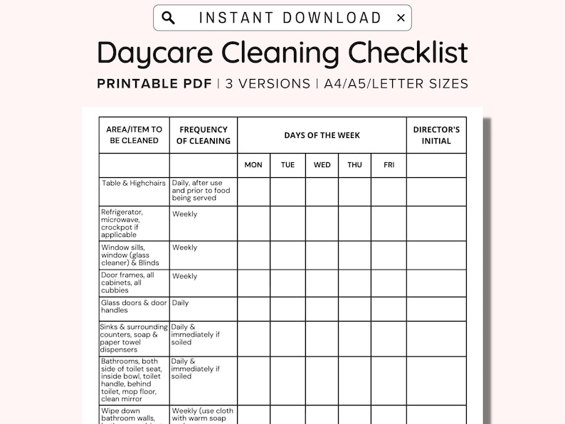 Daycare Cleaning Checklist Childcare Cleaning Checklist Etsy