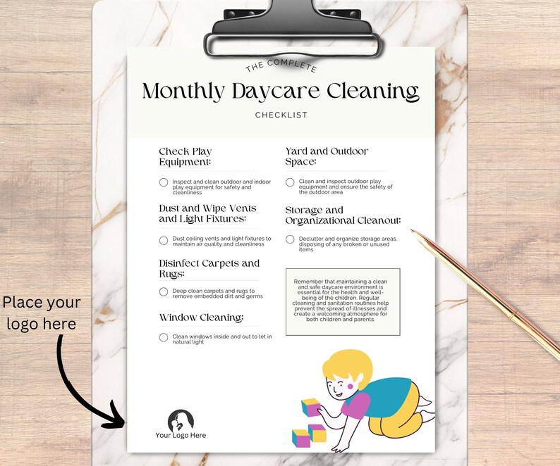 Daycare Checklist Cleaning Template Daycare Paperwork Forms Etsy
