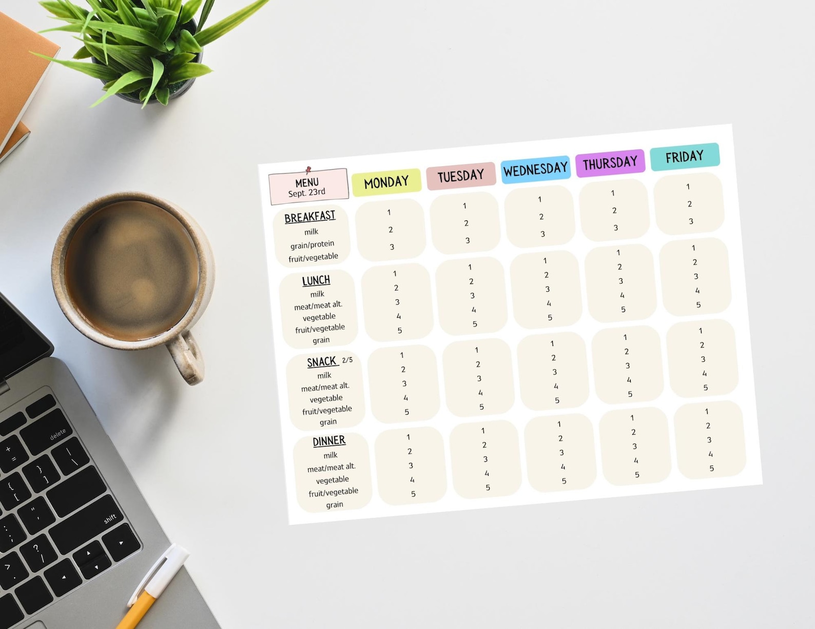 Daycare Menu Daycare Template Daycare Files Meal Planning Daycare
