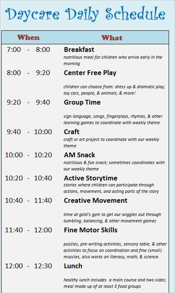 Here are some of the images for Daycare Schedule Template that we found in our website database.