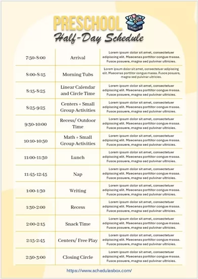 HOME SCHOOL Preschool SCHEDULE DAILY ROUTINES PRINTABLE