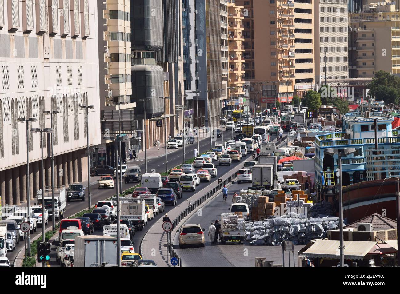 A daylight shot of city traffic in Dubai United Arab Emirates Stock