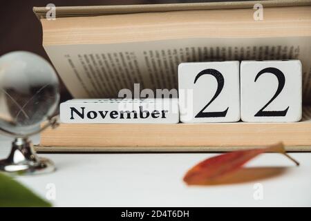 Twenty second day of autumn month calendar october with copy space