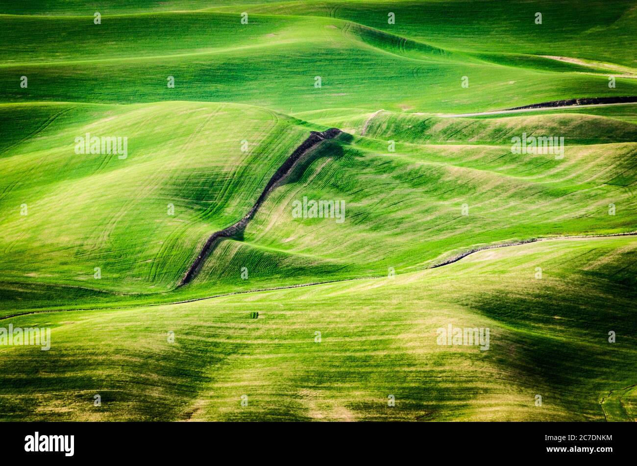 High angle shot of green hills at daytime in Eastern Washington Stock