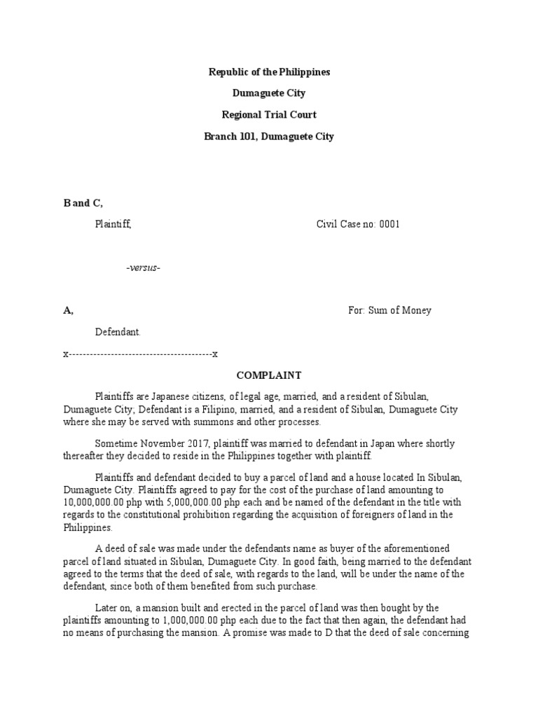 Republic of The Philippines Dumaguete City Regional Trial Court Branch