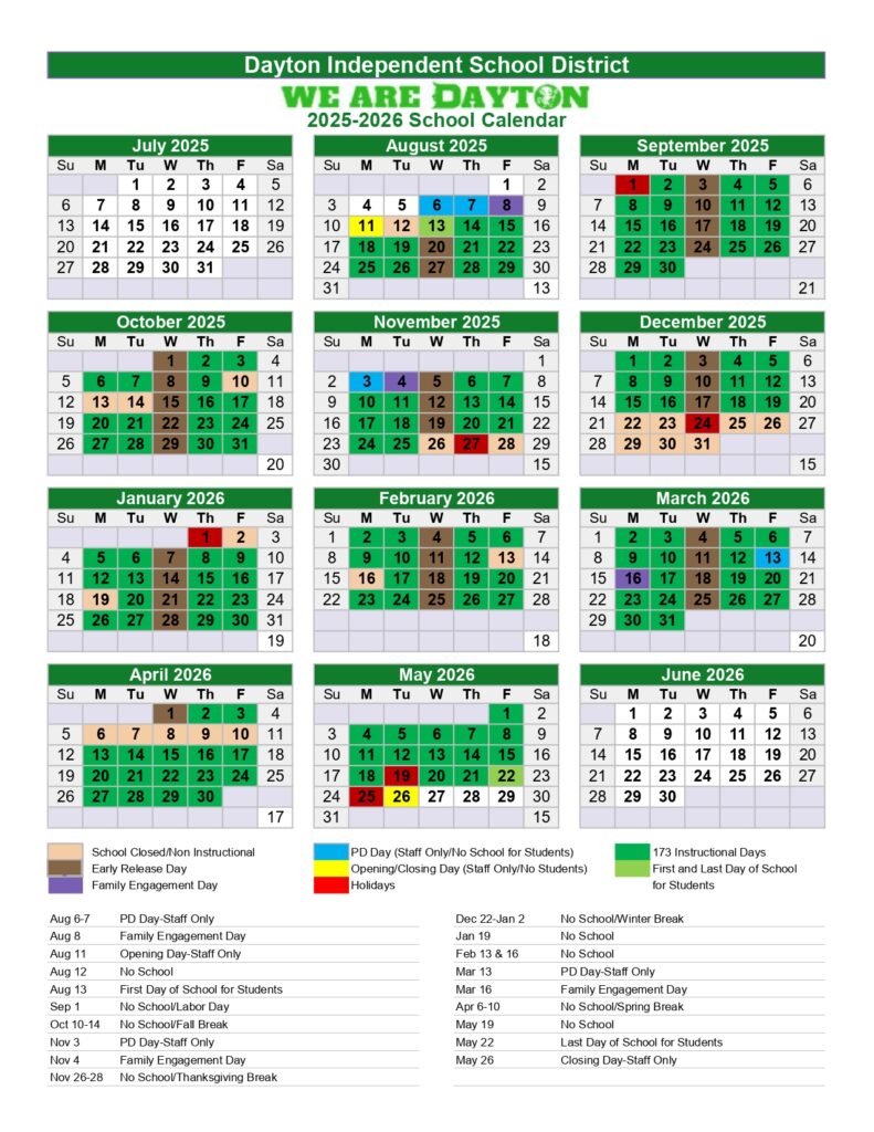 District Calendar Dayton Independent Schools