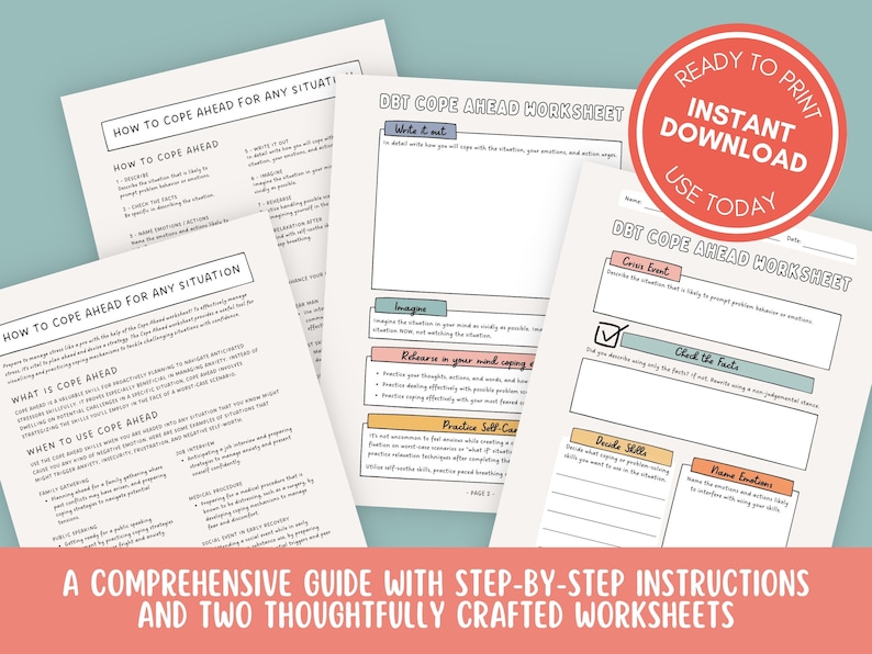 DBT Cope Ahead Skill Worksheet Bundle Instant Download Emotional