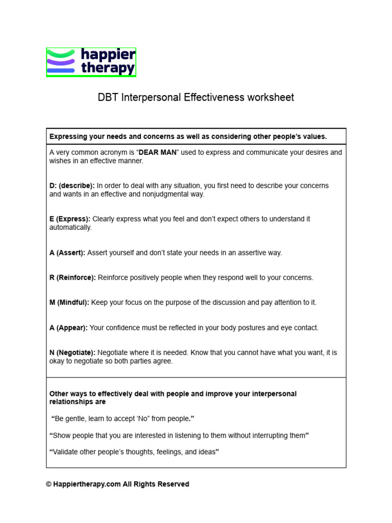DBT Interpersonal Effectiveness Worksheet HappierTHERAPY