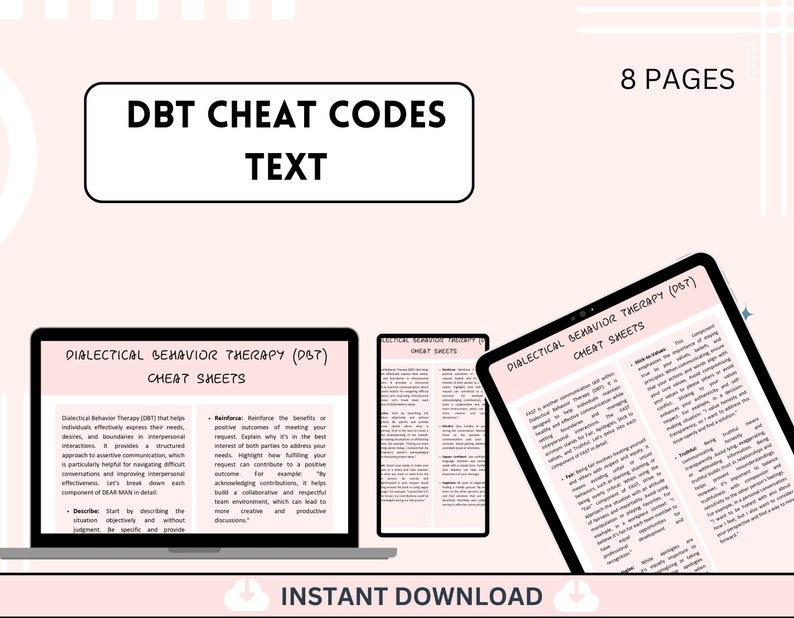 DBT Cheat Sheet DBT Skills Therapy Worksheet Therapy Office Decor
