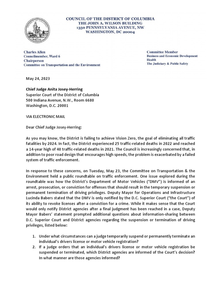 2023 05 24 Letter To DC Superior Court RE Notice To DMV PDF