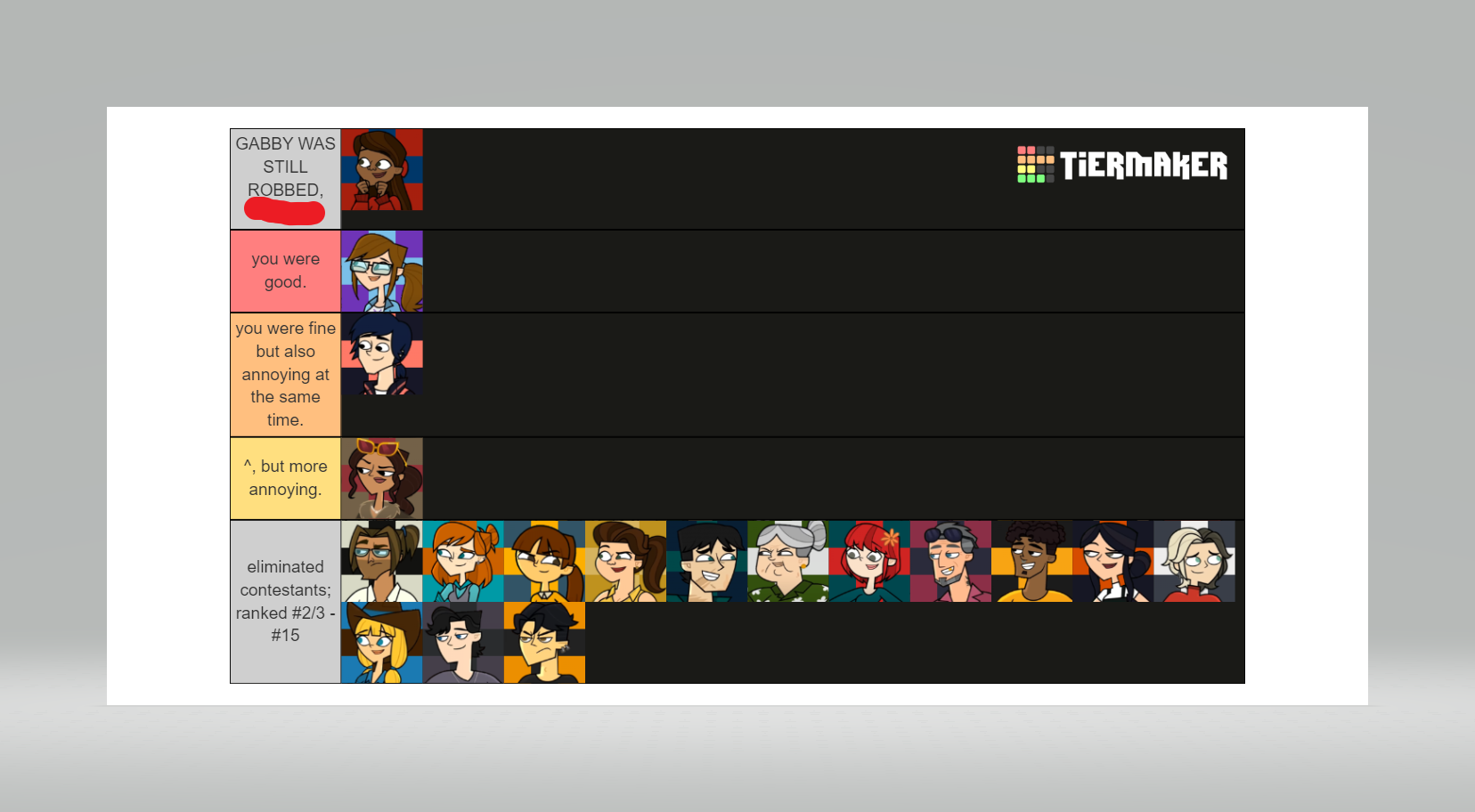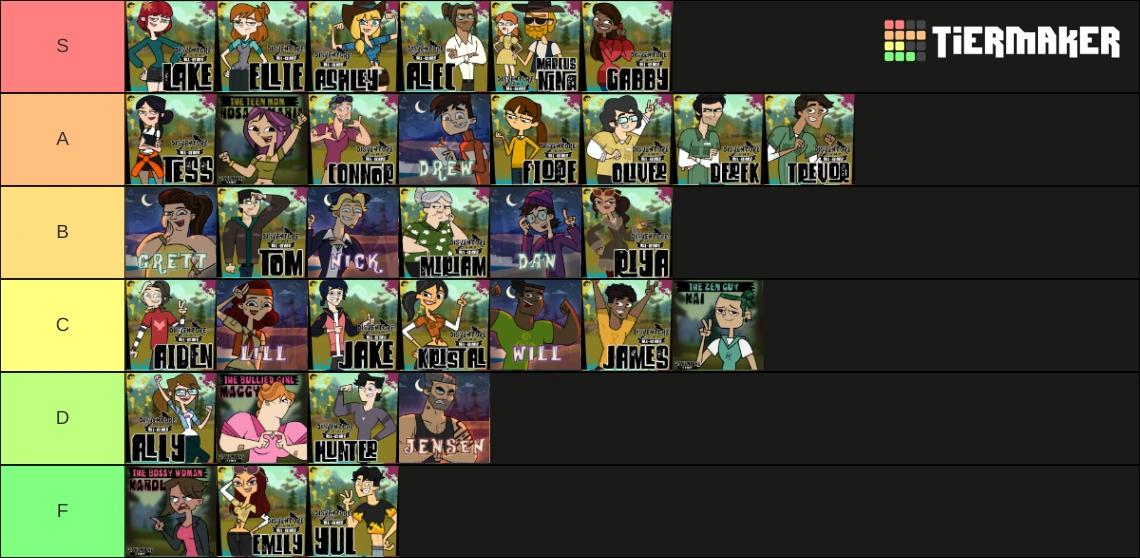 DCAS Tier List based on how much I want them to win : r/Totaldrama