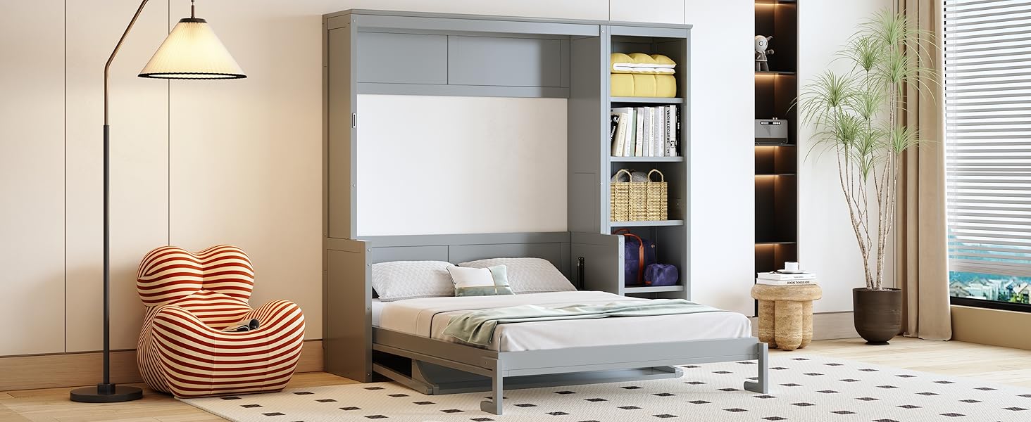 Amazon com: Merax Full Size Murphy Bed with Desk and Bookshelf Space