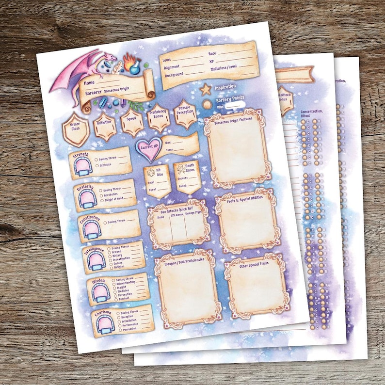 Sorcerer Character Sheet Dnd 5e Printable Fillable Form Etsy