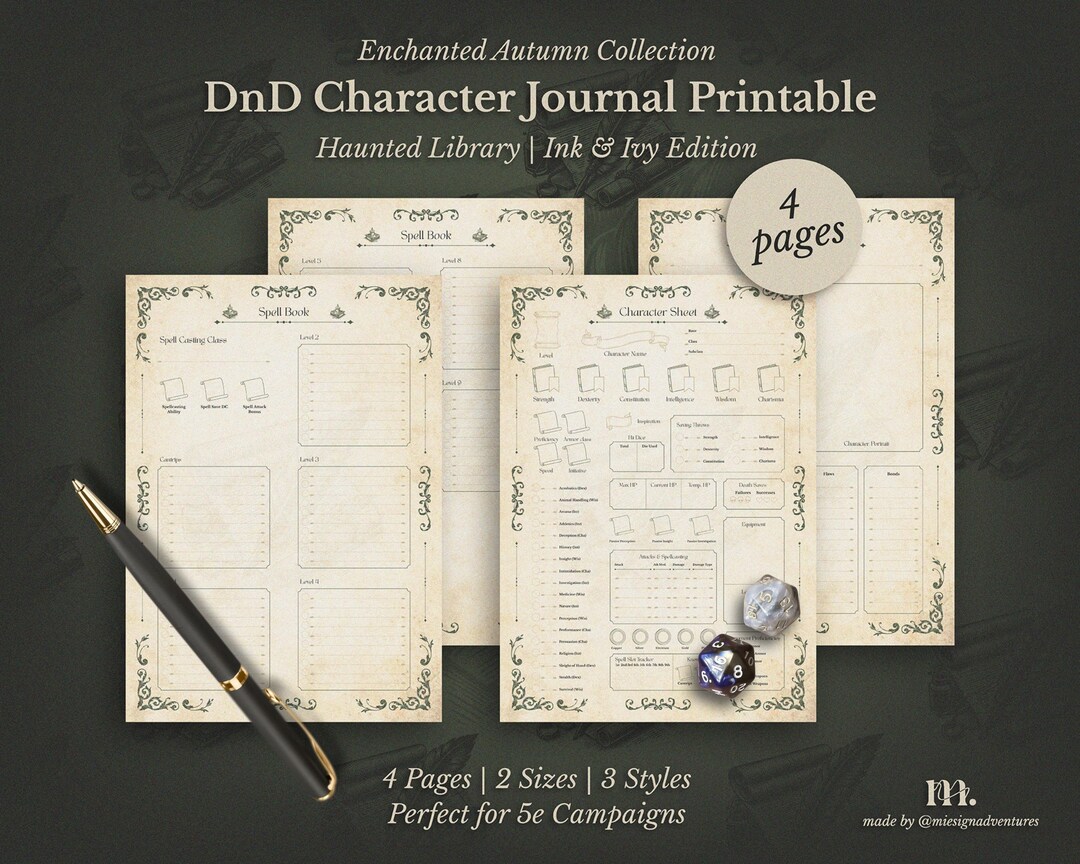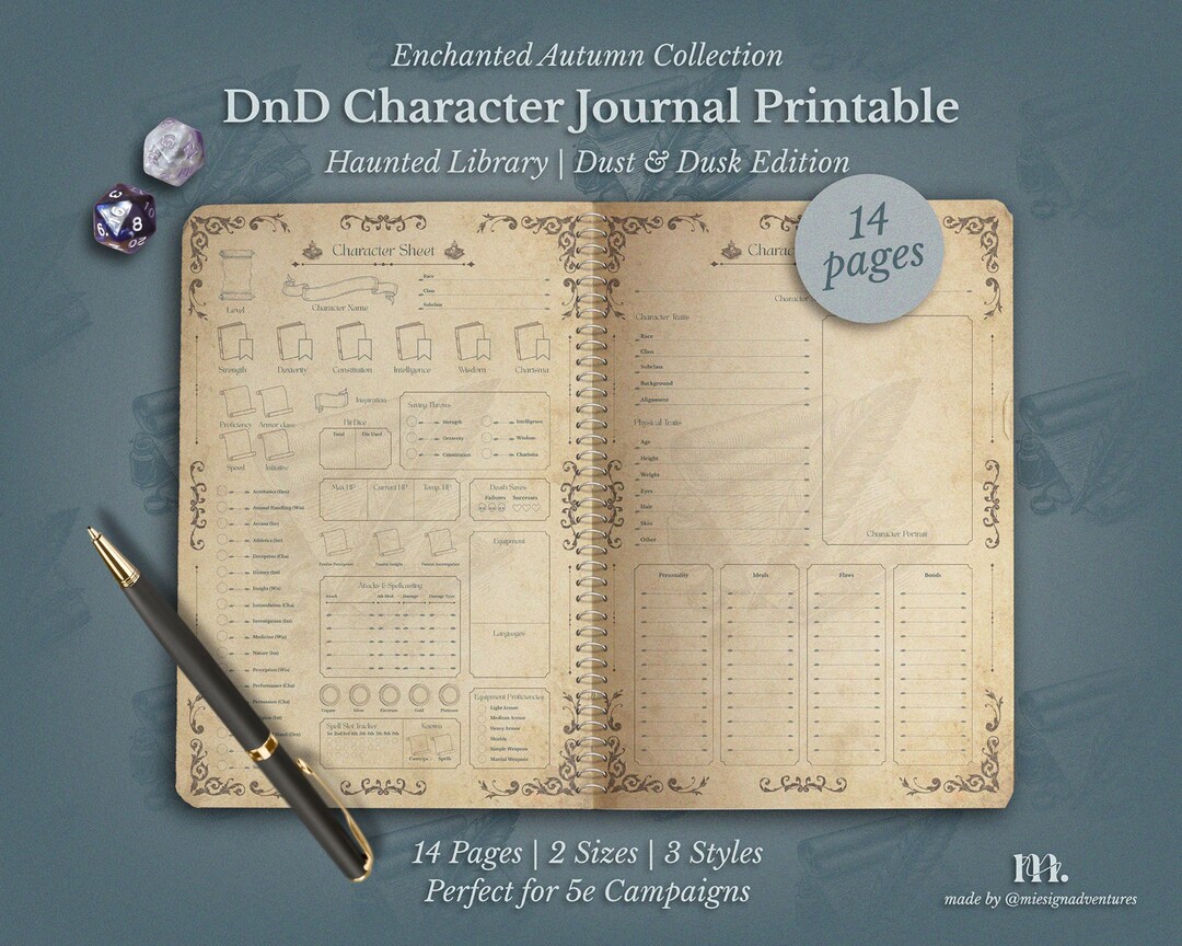 Dnd 5e Character Journal Printable RPG Sheets Haunted Library Dust