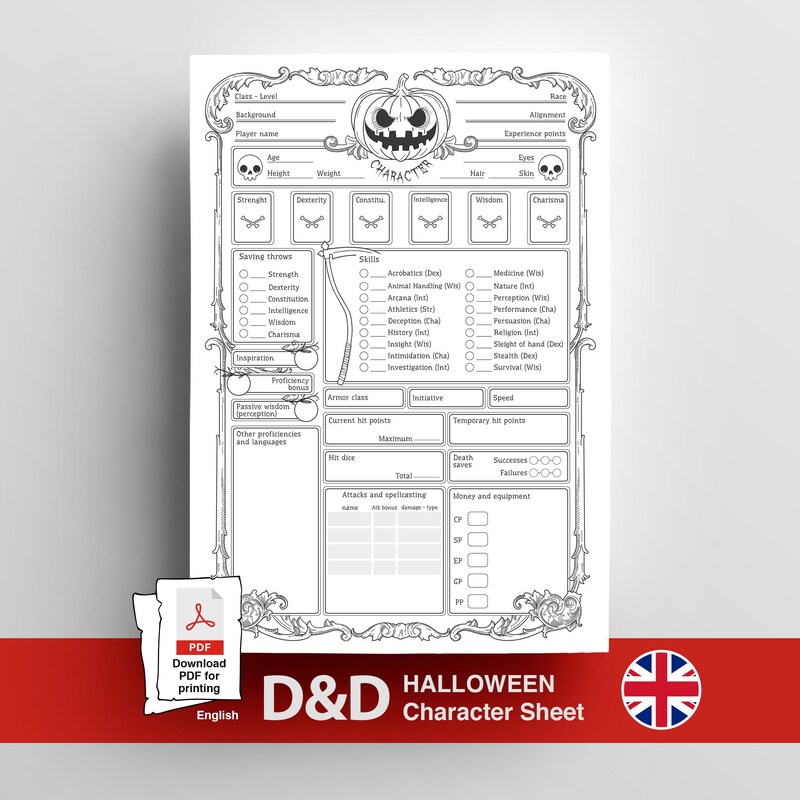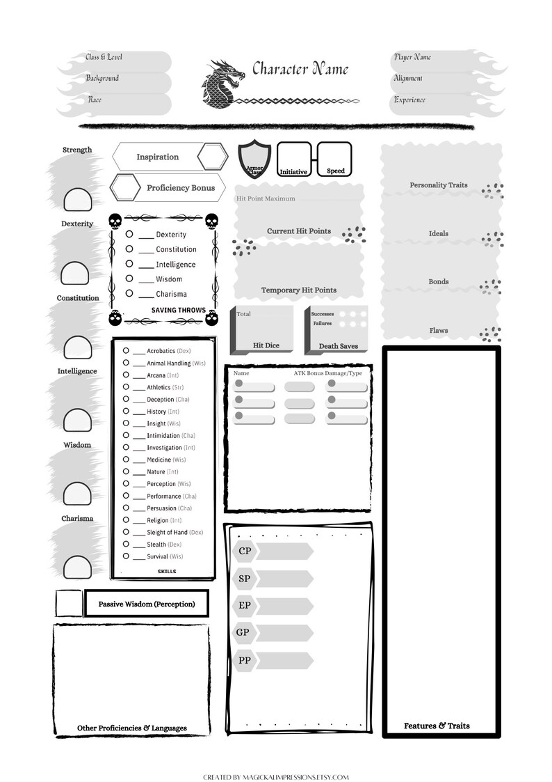 Printable DND Character Sheet: Fillable PDF Journal (digital Download