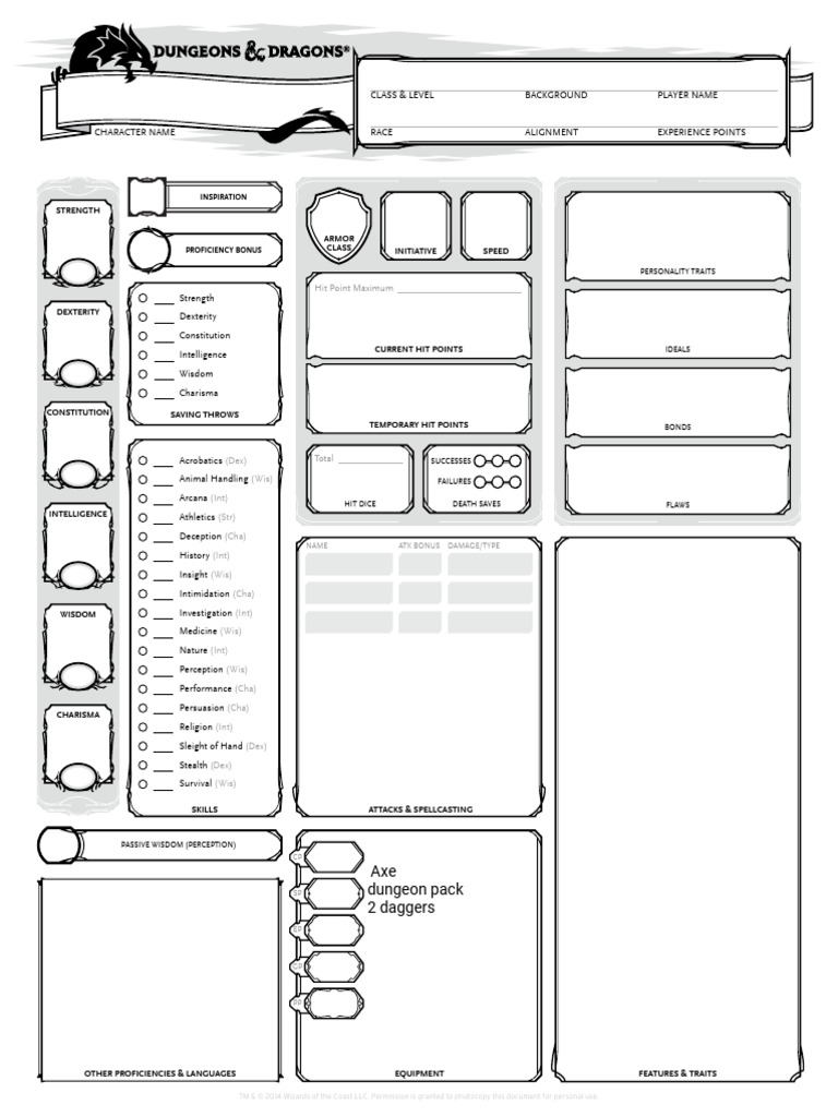 Dd Printable Character Sheet