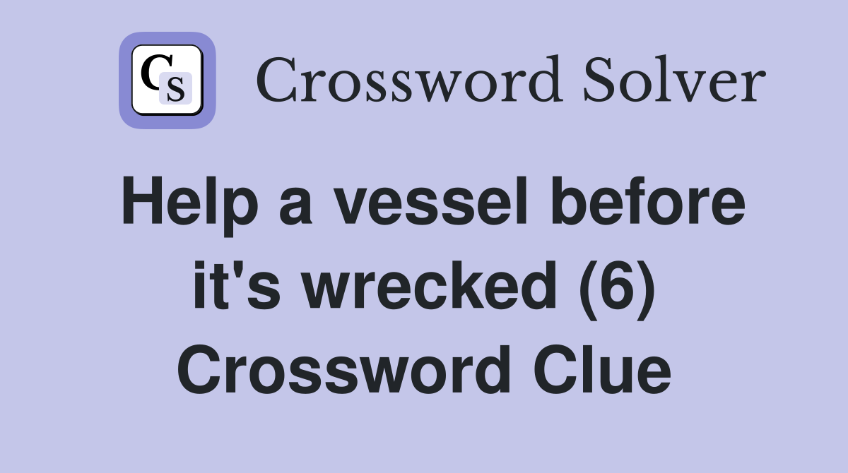 Help a vessel before it #39 s wrecked (6) Crossword Clue Answers