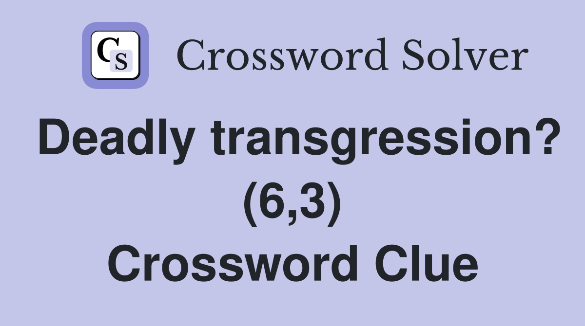 Deadly transgression? (6 3) Crossword Clue Answers Crossword Solver