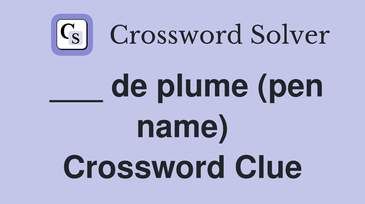 de plume (pen name) Crossword Clue Answers Crossword Solver