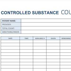 Controlled Substance Count Log Printable Medication Tracking Form for