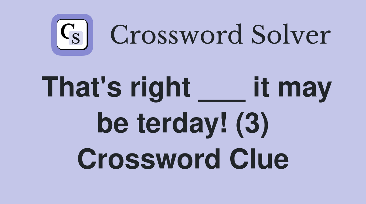 That #39 s right it may be terday (3) Crossword Clue Answers