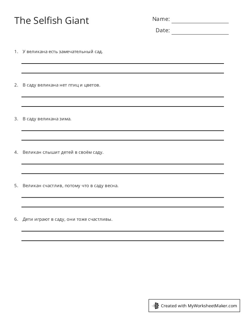 The Selfish Giant My Worksheet Maker: Create Your Own Worksheets