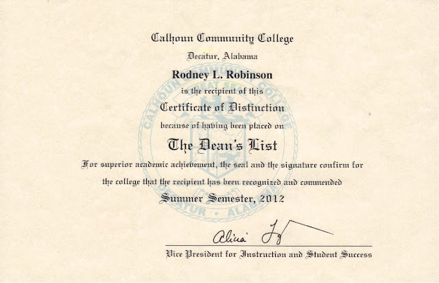 Dean #39 s List Certificate Summer Semester 2012 Robinson Climate Control