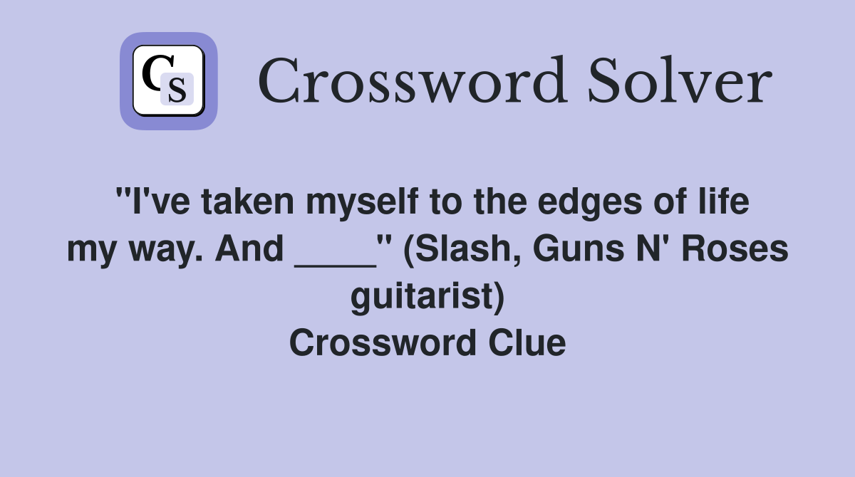quot I #39 ve taken myself to the edges of life my way And quot (Slash Guns