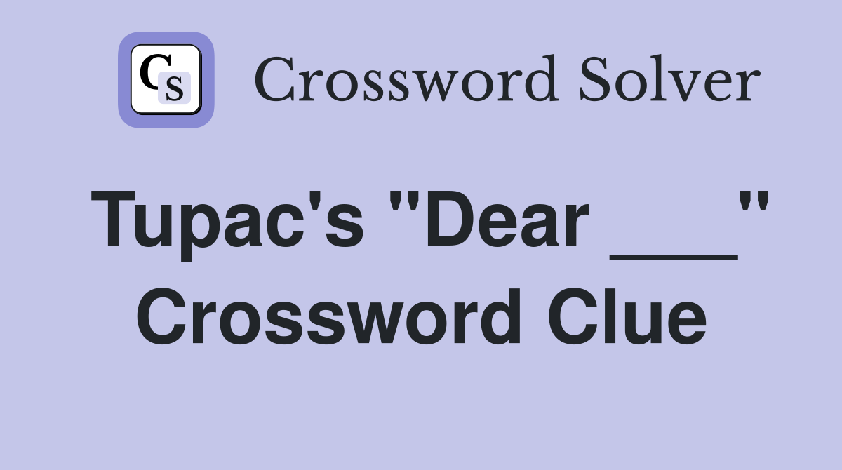Tupac #39 s quot Dear quot Crossword Clue Answers Crossword Solver