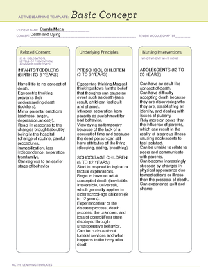 Basic Concept death dyingtoddler NUR 336 ACTIVE LEARNING TEMPLATES