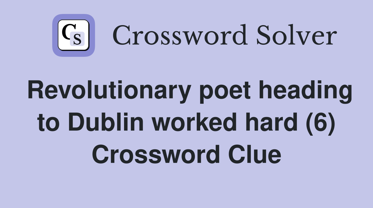 Revolutionary poet heading to Dublin worked hard (6) Crossword Clue