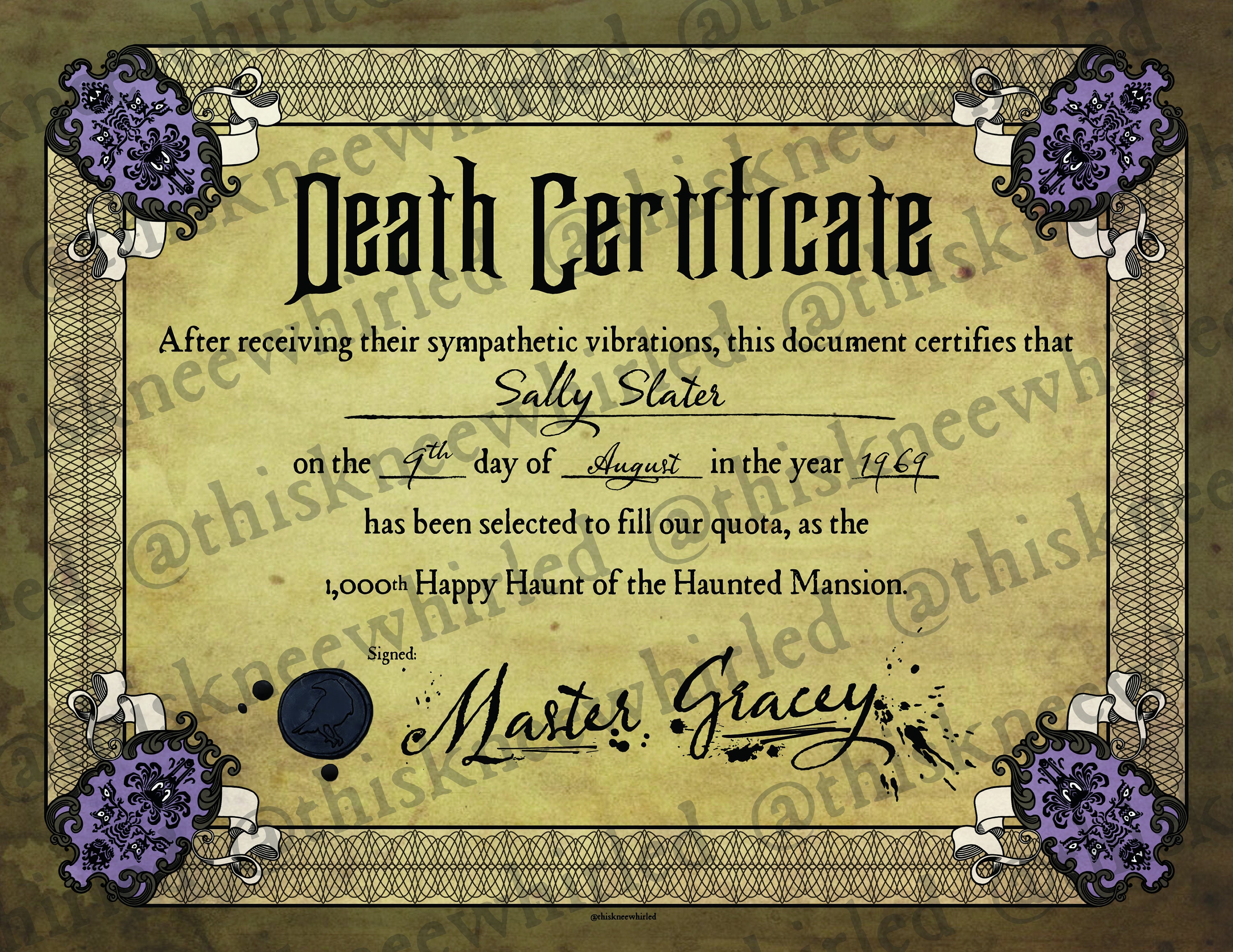 Customizable Disney Haunted Mansion Death Certificate Etsy