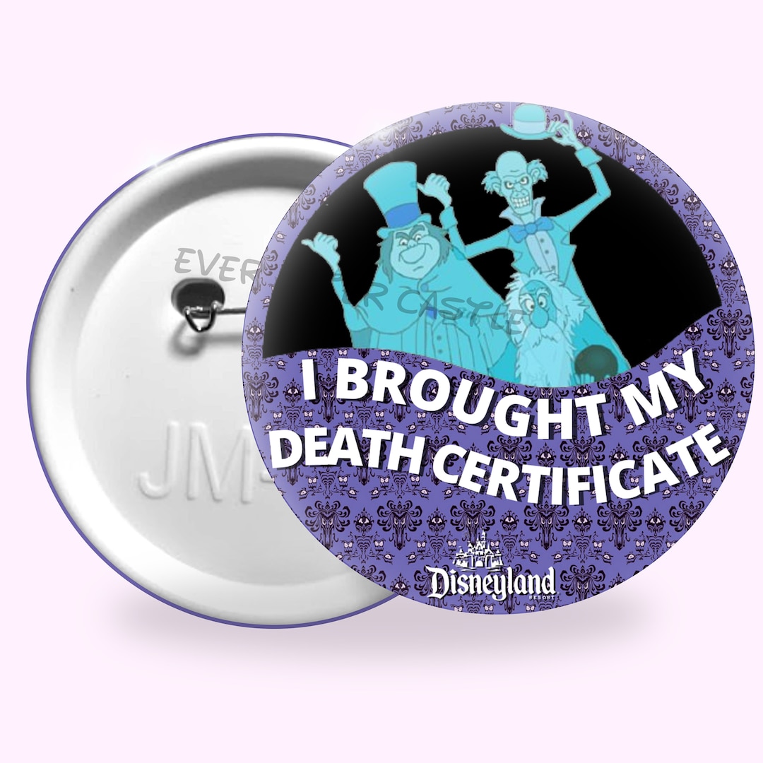 Haunted Mansion I Brought My Death Certificate Disney Button Pin Etsy