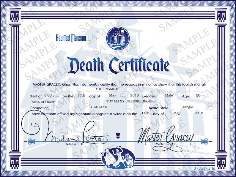 Haunted Mansion Death Certificate Digital Download 8 5 quot X 11 quot Etsy