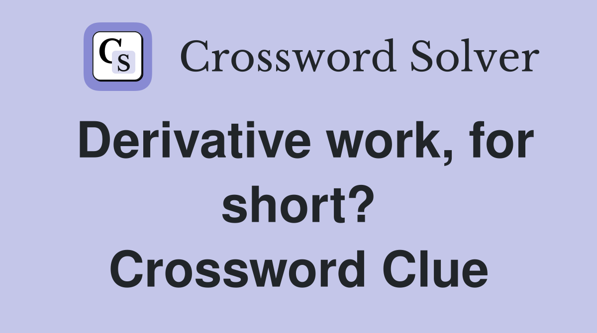 Derivative work for short? Crossword Clue Answers Crossword Solver
