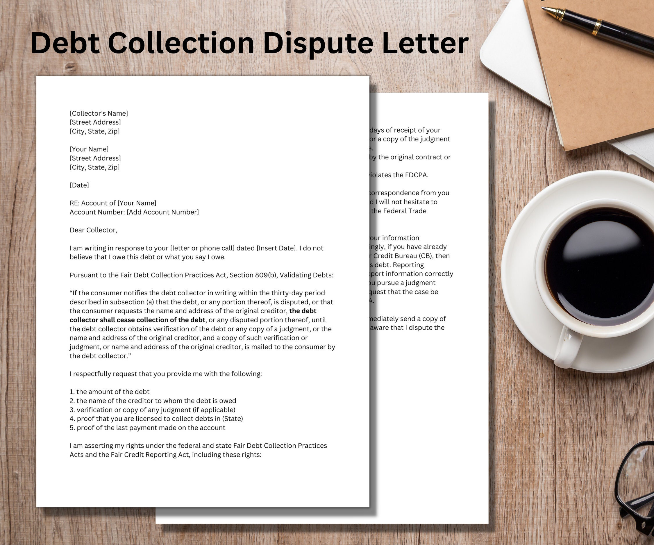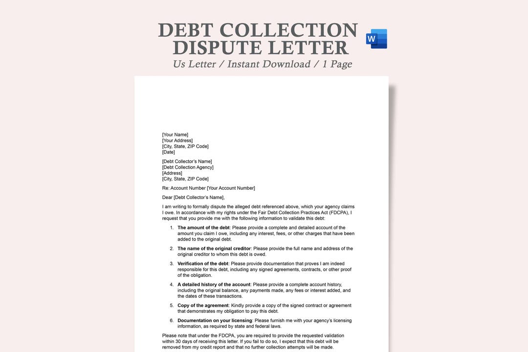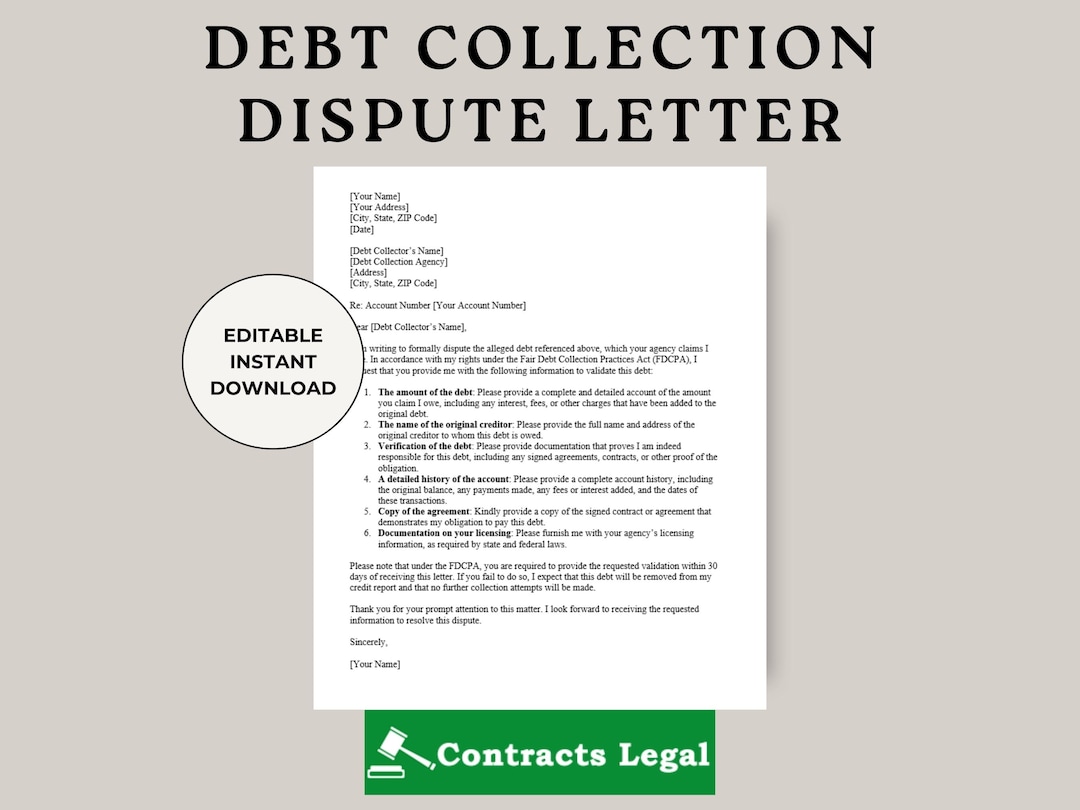 Debt Collection Dispute Letter Template Google Docs/microsoft Etsy