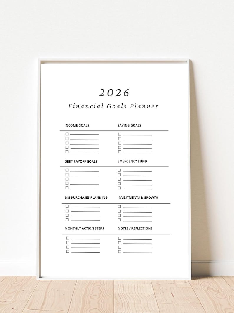 2026 Financial Goals Planner Savings Debt Payoff Budget Money