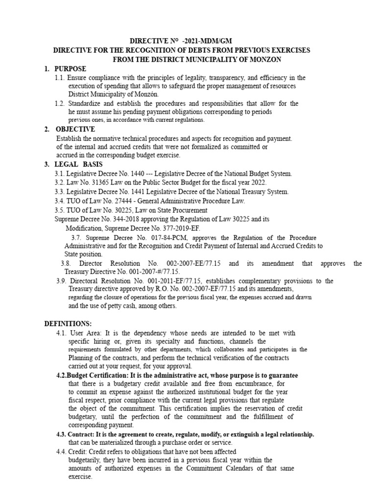 DRAFT DIRECTIVE FOR DEBT RECOGNITION PDF Receipt Debt