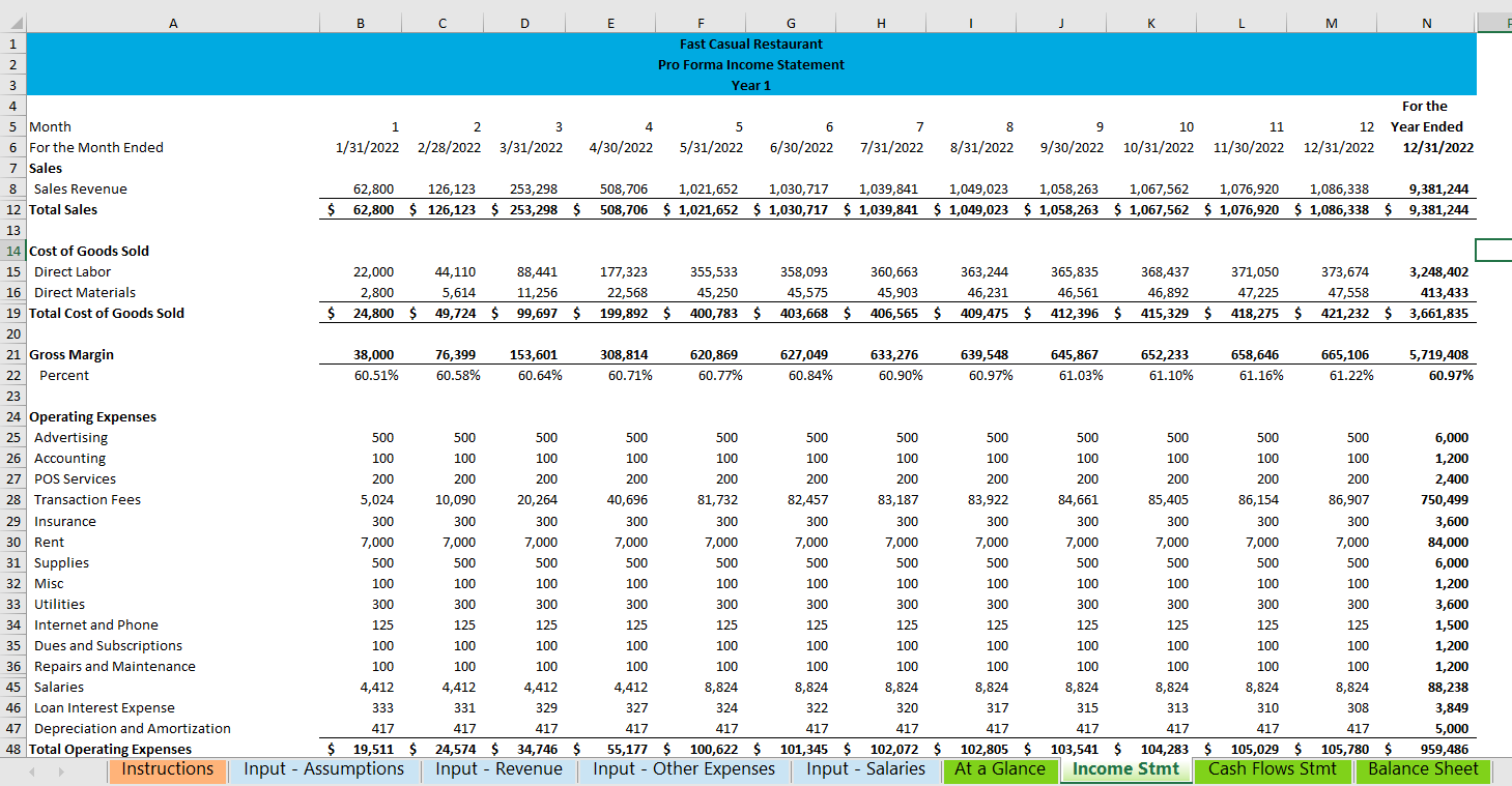 Bar and Lounge Financial Model Excel Template Oak Business Consultant